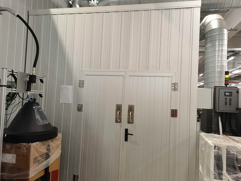 有了圖紙的加持,操作工人安裝起來(lái)方便快捷很多,激光房安裝步驟一般是先固定底部,然后搭建外框架,再裝設(shè)備,就像是一個(gè)小房子,主要的功能是在設(shè)備(焊接機(jī)器人)外圍建立安全范圍防護(hù)措施,以劃分安全范圍,阻隔人或物與設(shè)備直接接觸,起到安全警示作用。