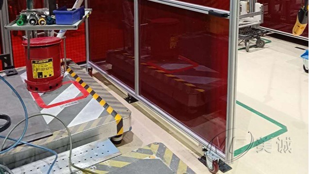 車間防弧光板隔斷是在設(shè)備外圍建立安全范圍防護(hù)措施,以劃分安全范圍,阻隔人或物與設(shè)備直接接觸,起到安全警示作用,常和報(bào)警及斷電設(shè)備配套使用??蚣懿糠质褂娩X型材,配合絲網(wǎng)、亞克力、PC等各類板材,通過鋁型材配件安裝膨脹螺栓連接鋁型材立柱和地面。
